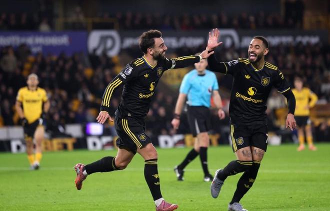 第62分钟曼联终结胜负悬念,B费大禁区前沿挑传,突然前插的芒特获得了无人盯防起脚的机会,后者轻松推射破门,将领先的优势扩大到了3-1,第81分钟狼队禁区内手球,送给了曼联一粒点球,B费稳稳主罚命中,将比分定格为了4-1。